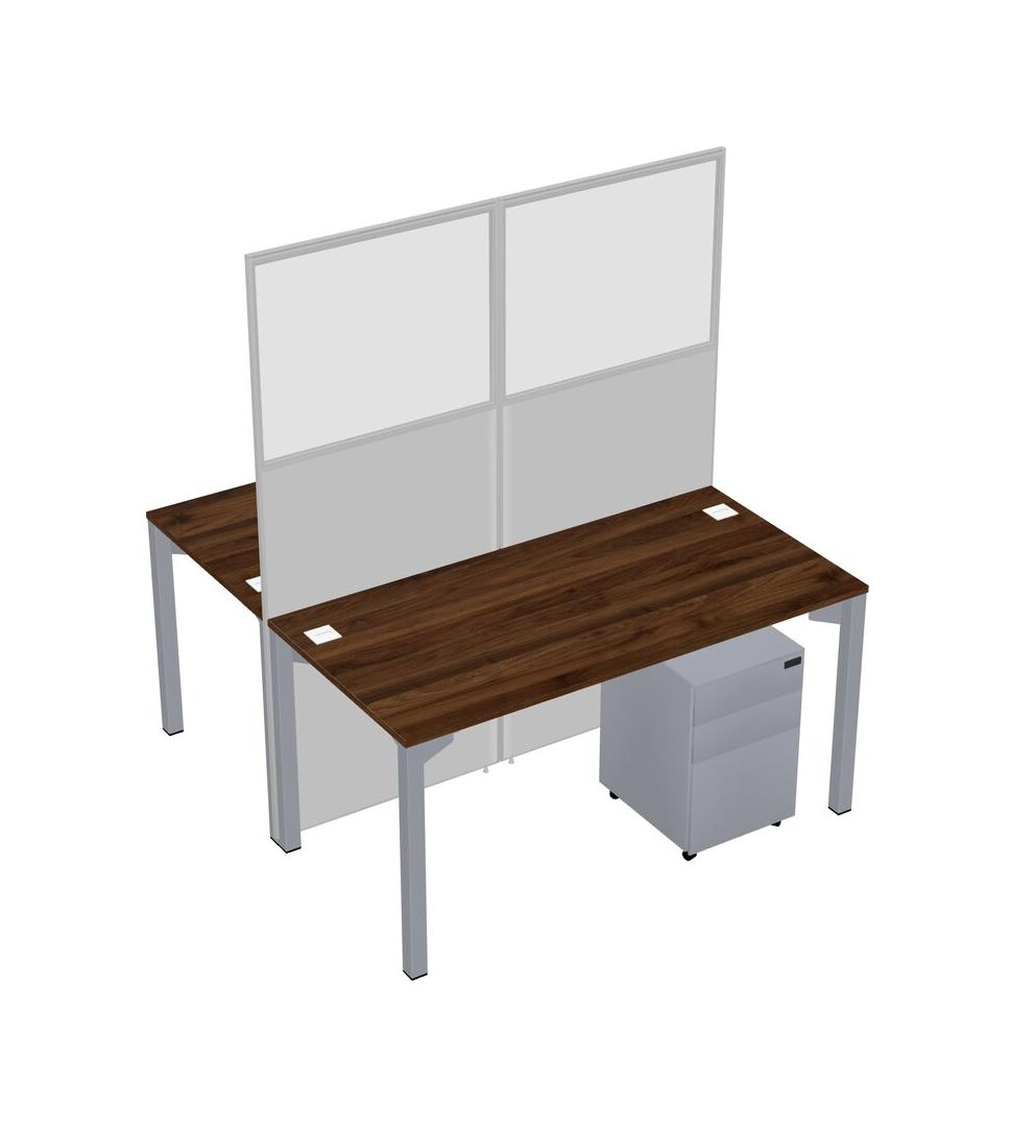 Columbia Walnut Shared Rectangular Office Cubicle Panel System With Mobile Drawers For 2 Persons