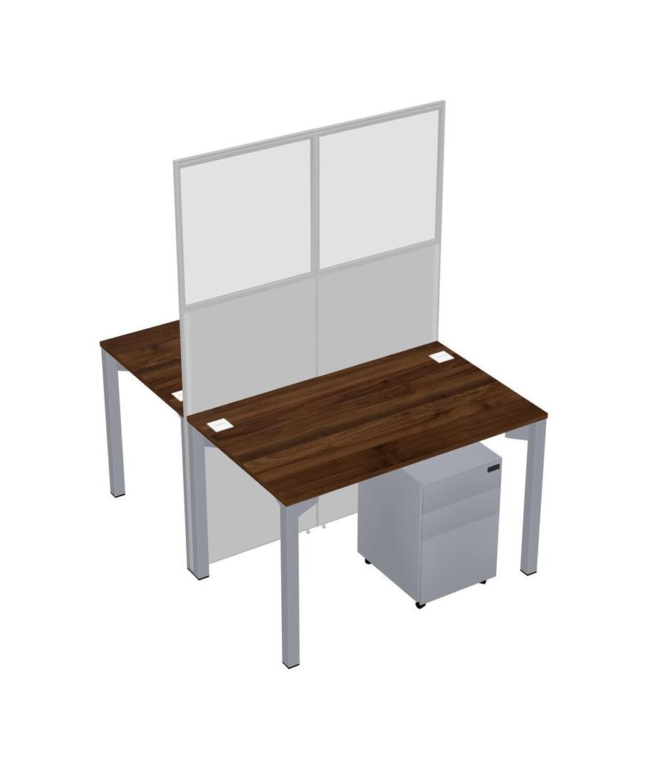 Columbia Walnut Shared Rectangular Office Cubicle Panel System With Mobile Drawers For 2 Persons