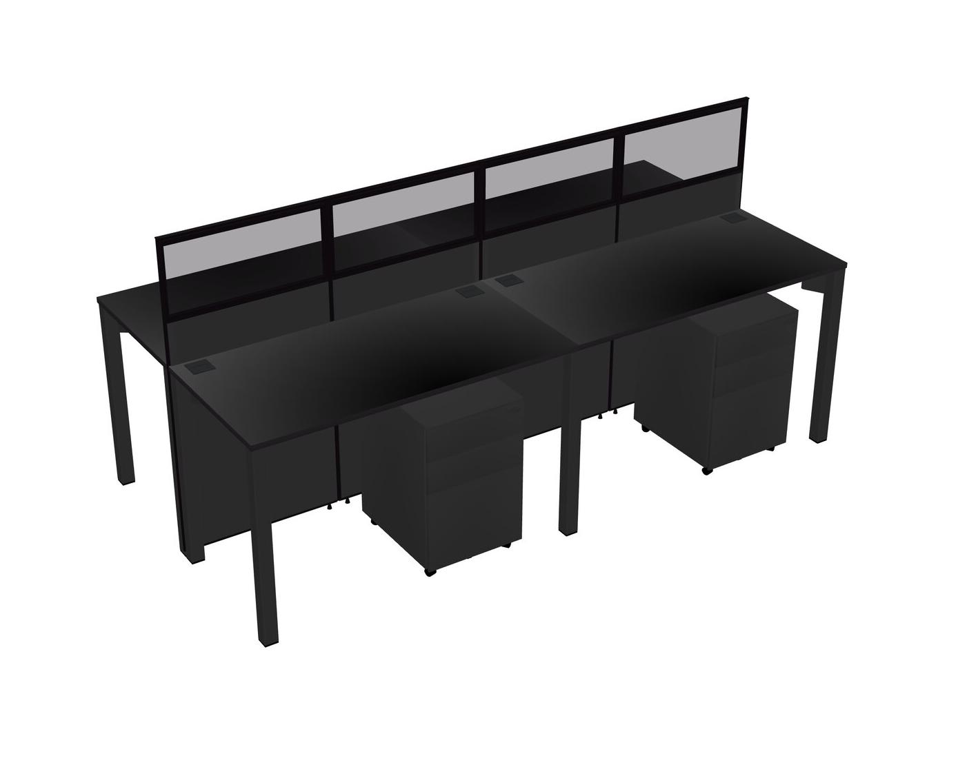 Black Shared Rectangular Office Cubicle Panel System With Mobile Drawers For 4 Persons