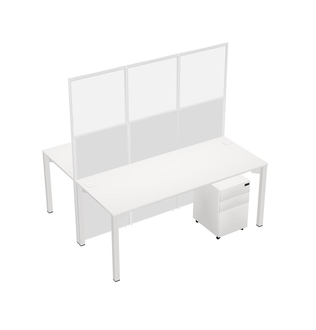 White Shared Rectangular Office Cubicle Panel System With Mobile Drawers For 2 Persons