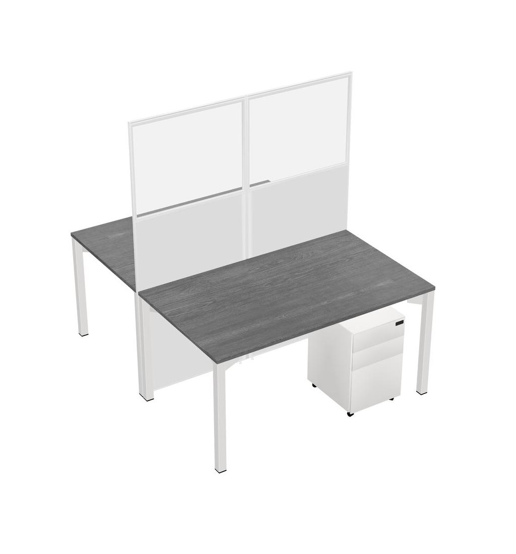 Grey Shared Rectangular Office Cubicle Panel System With Mobile Drawers For 2 Persons