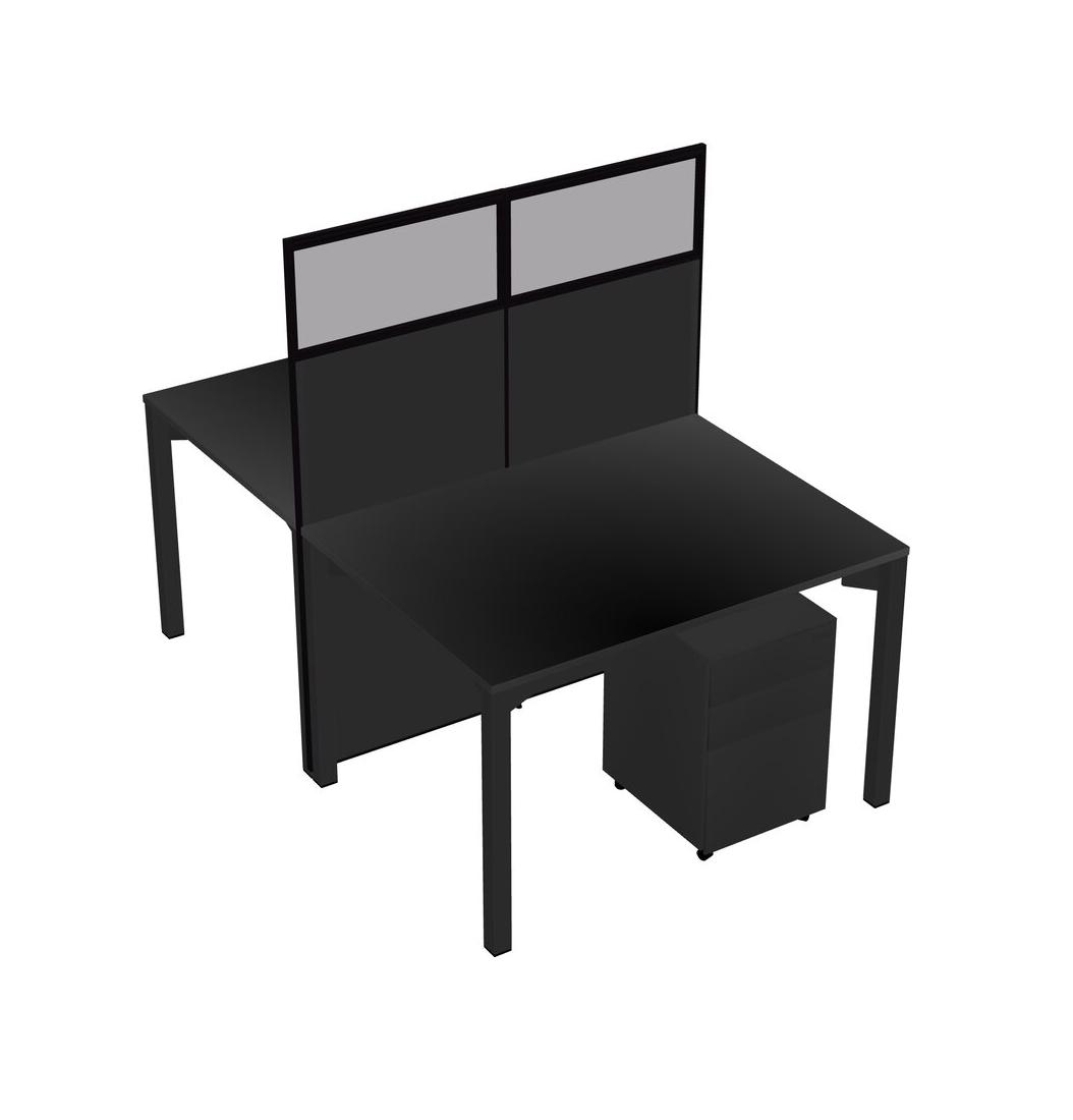 Black Shared Rectangular Office Cubicle Panel System With Mobile Drawers For 2 Persons