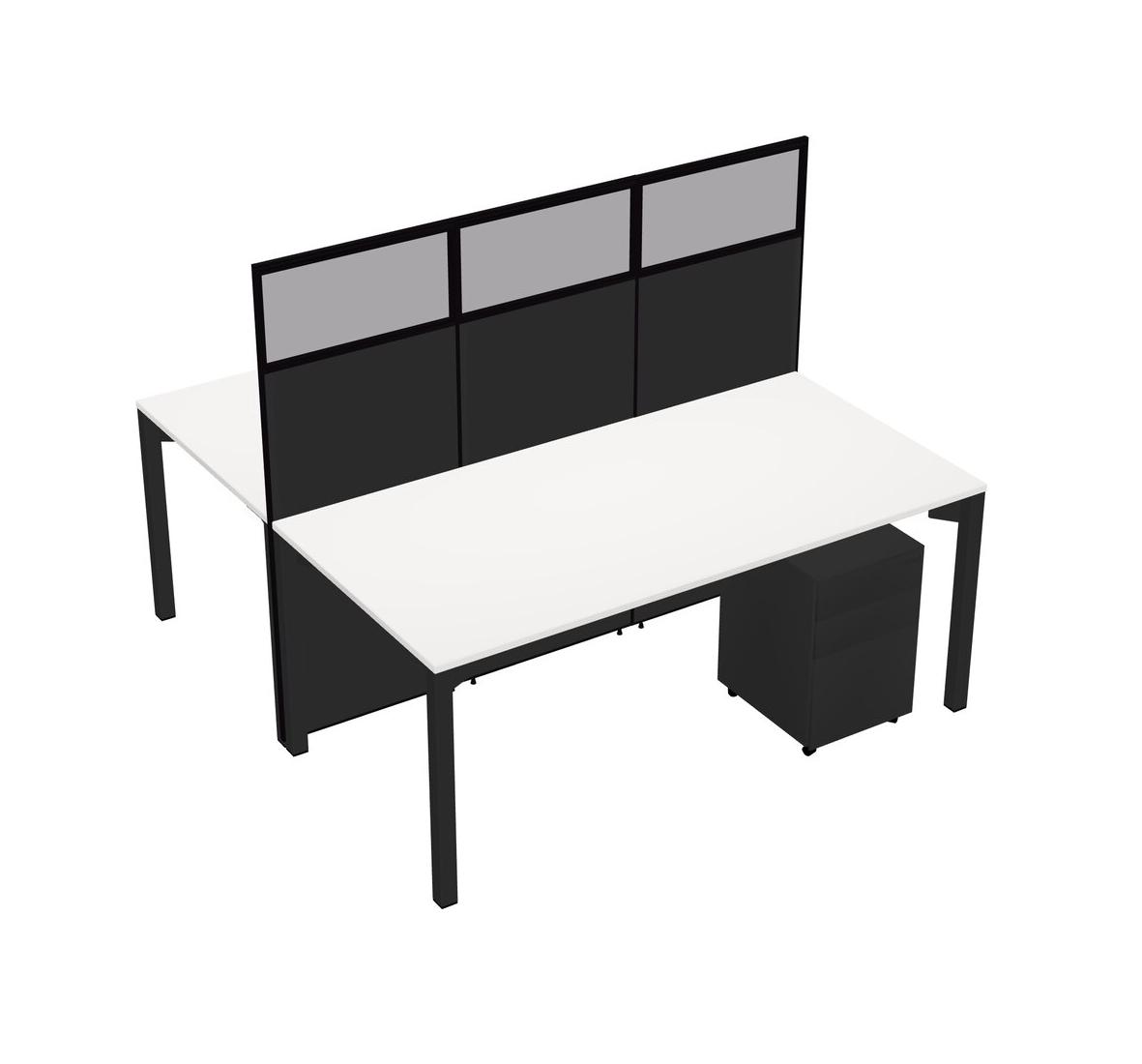 White Shared Rectangular Office Cubicle Panel System With Mobile Drawers For 2 Persons