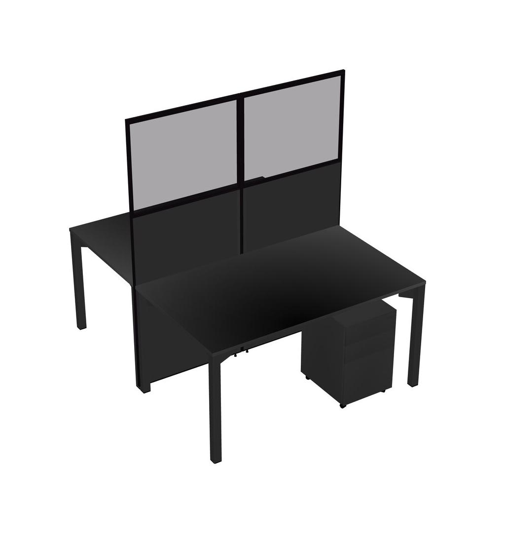 Black Shared Rectangular Office Cubicle Panel System With Mobile Drawers For 2 Persons