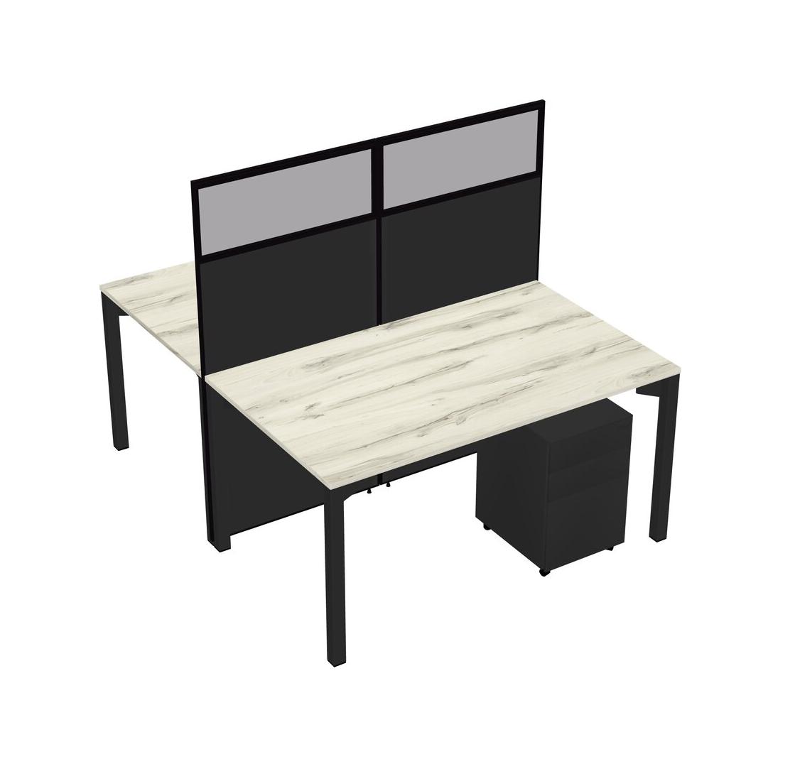 Heinne Holz Shared Rectangular Office Cubicle Panel System With Mobile Drawers For 2 Persons