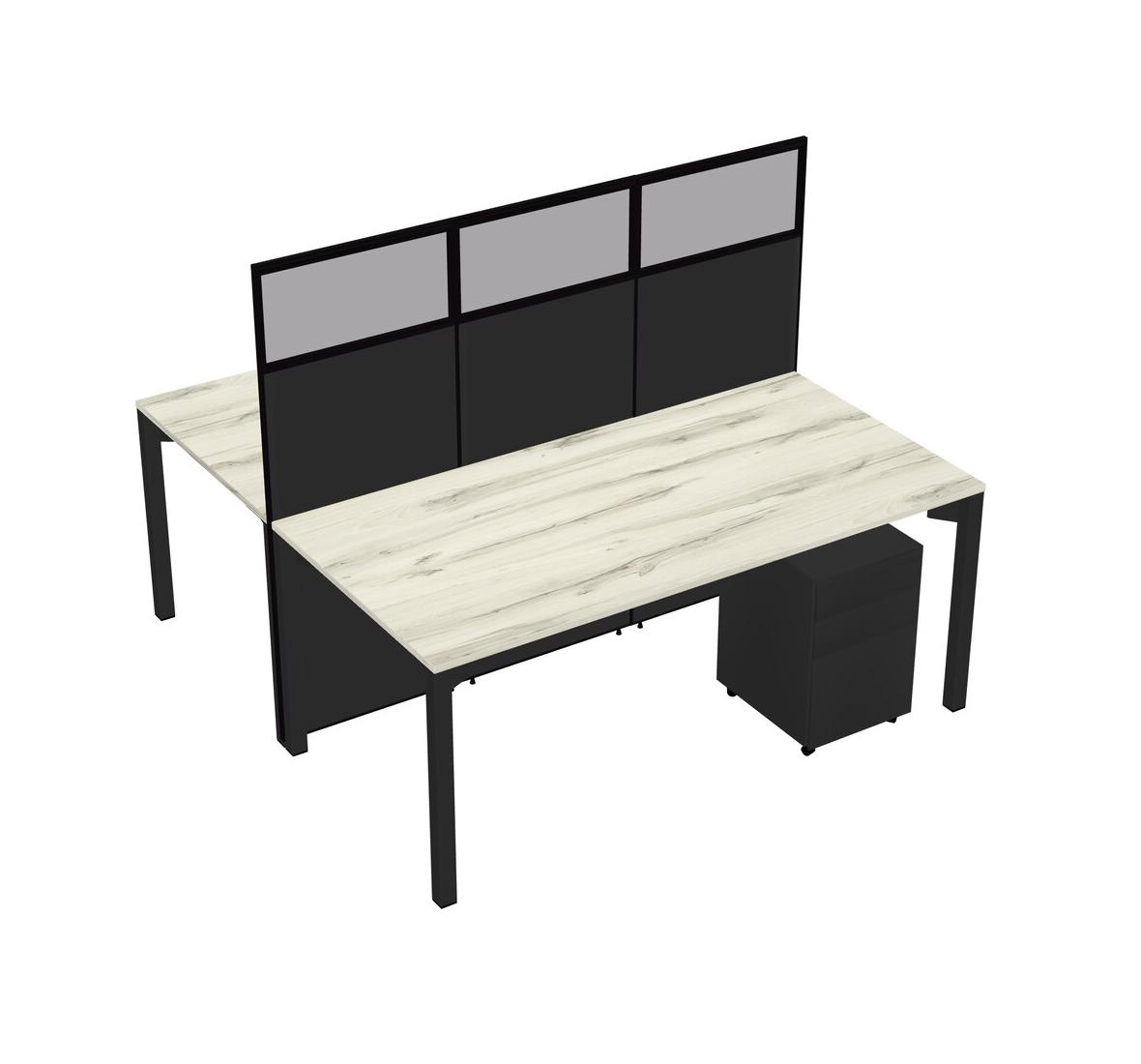 Heinne Holz Shared Rectangular Office Cubicle Panel System With Mobile Drawers For 2 Persons