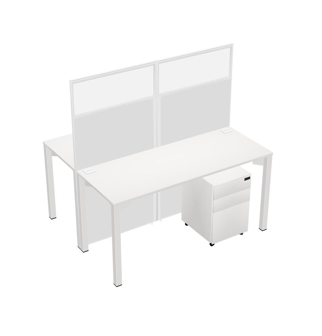 White Shared Rectangular Office Cubicle Panel System With Mobile Drawers For 2 Persons