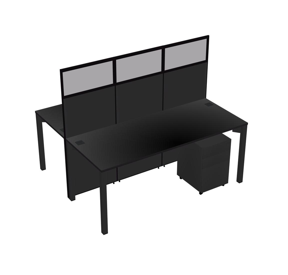 Black Shared Rectangular Office Cubicle Panel System With Mobile Drawers For 2 Persons