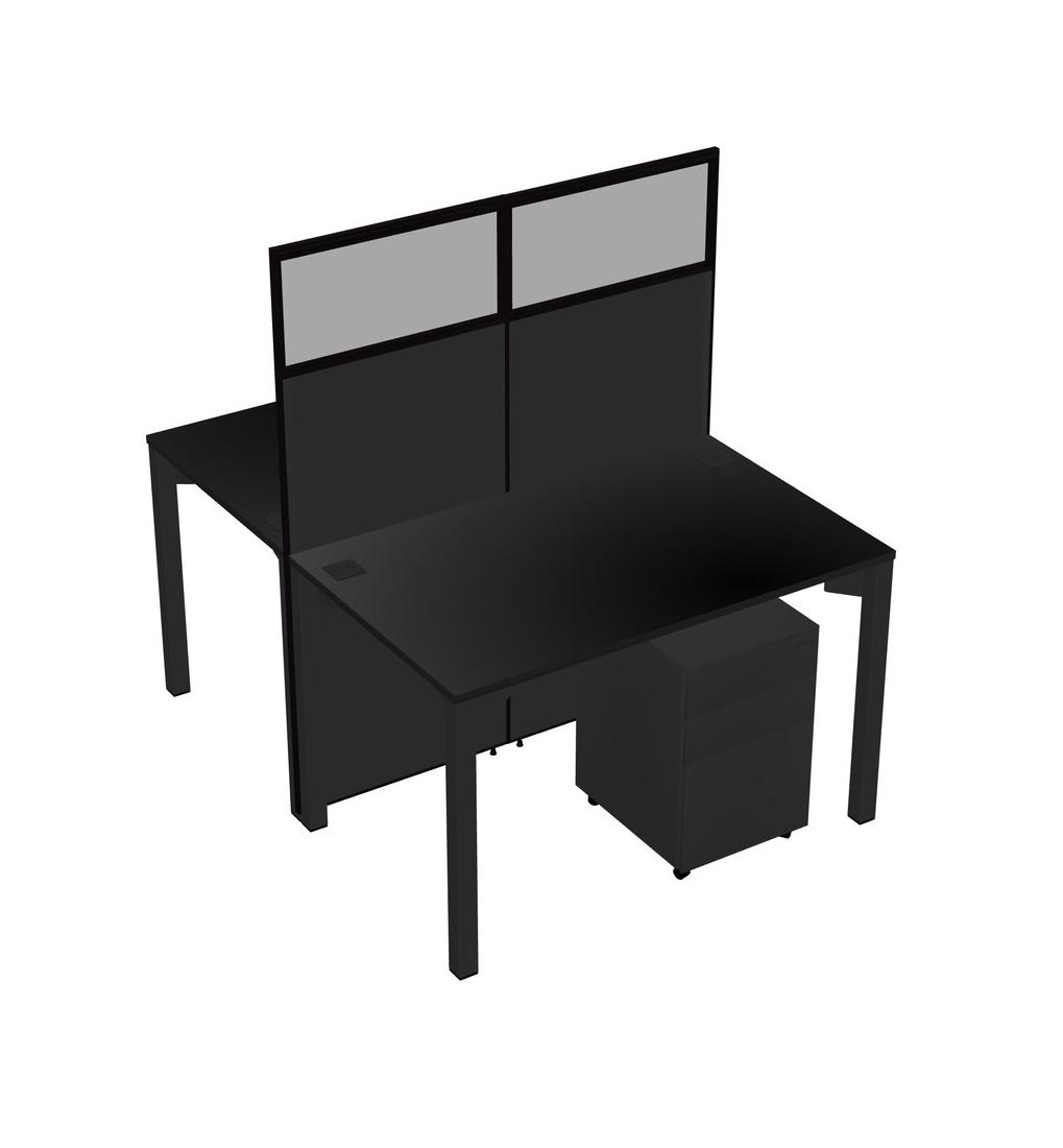 Black Shared Rectangular Office Cubicle Panel System With Mobile Drawers For 2 Persons