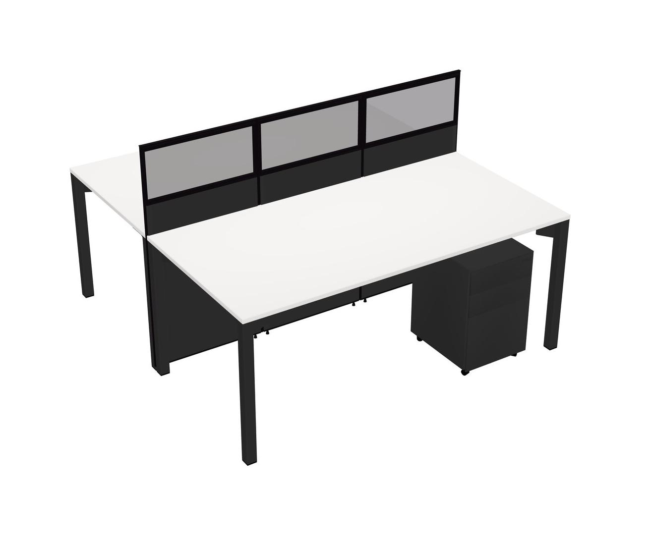 White Shared Rectangular Office Cubicle Panel System With Mobile Drawers For 2 Persons