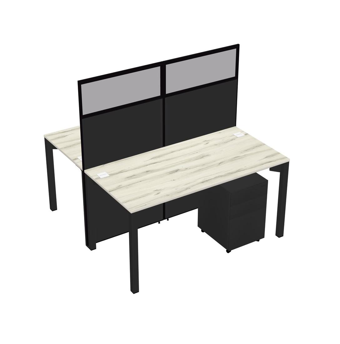 Heinne Holz Shared Rectangular Office Cubicle Panel System With Mobile Drawers For 2 Persons