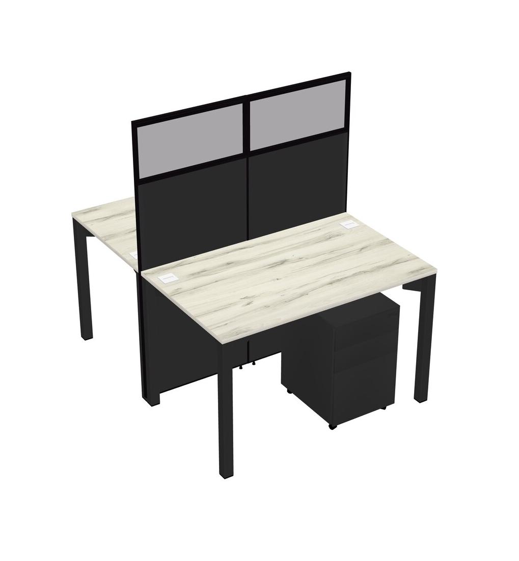 Heinne Holz Shared Rectangular Office Cubicle Panel System With Mobile Drawers For 2 Persons