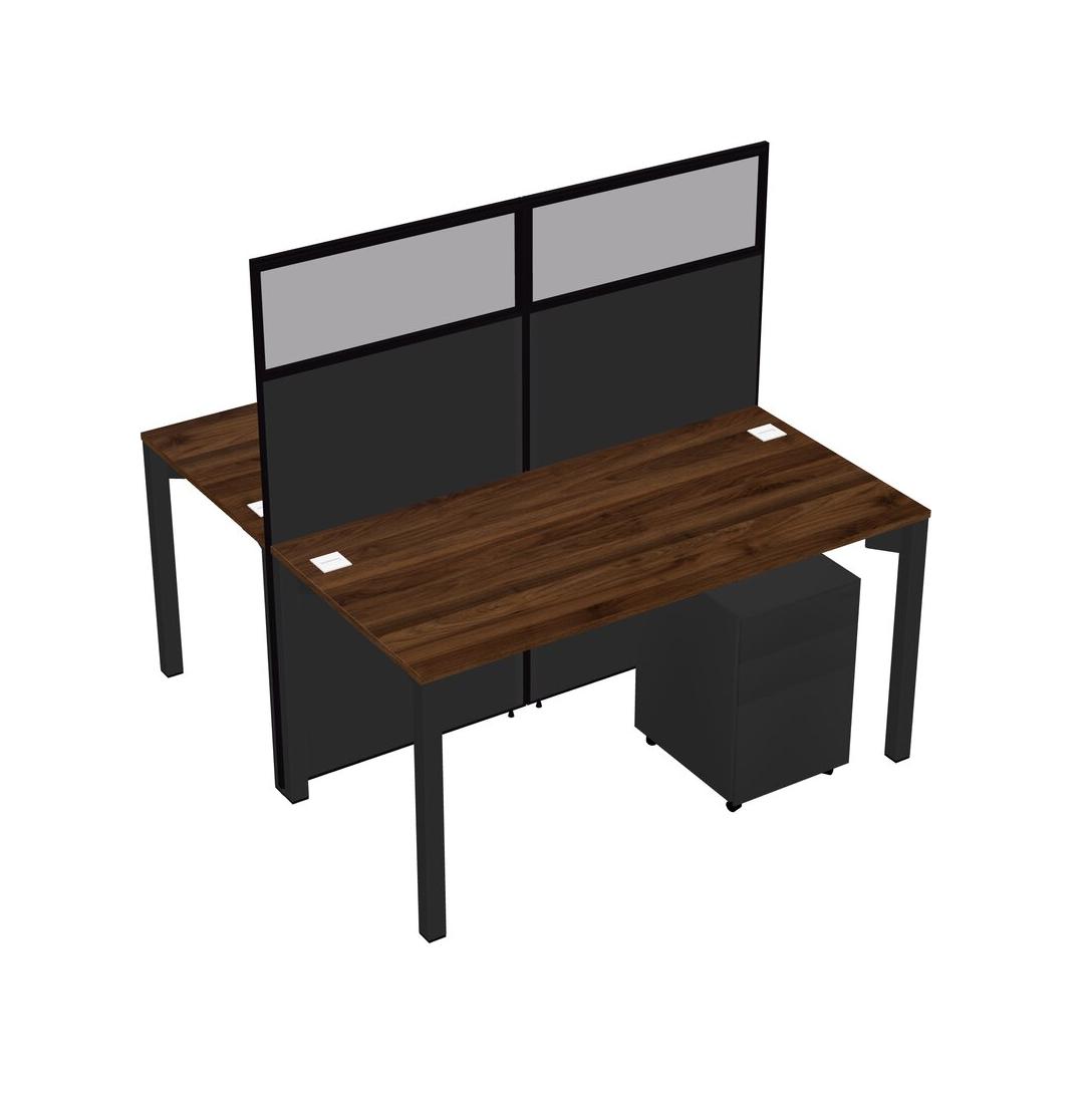 Columbia Walnut Shared Rectangular Office Cubicle Panel System With Mobile Drawers For 2 Persons
