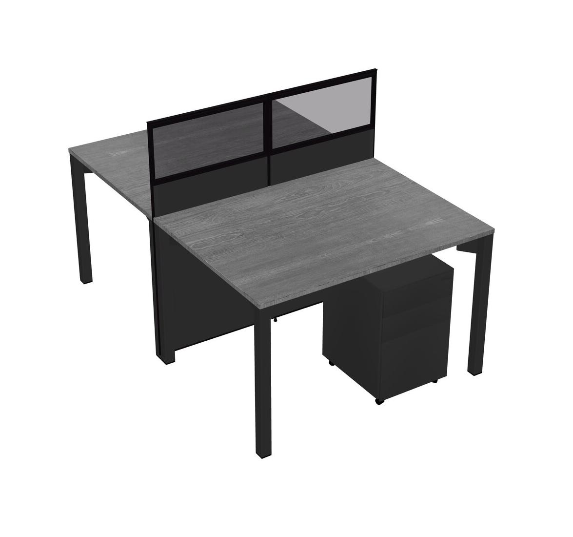 Grey Shared Rectangular Office Cubicle Panel System With Mobile Drawers For 2 Persons