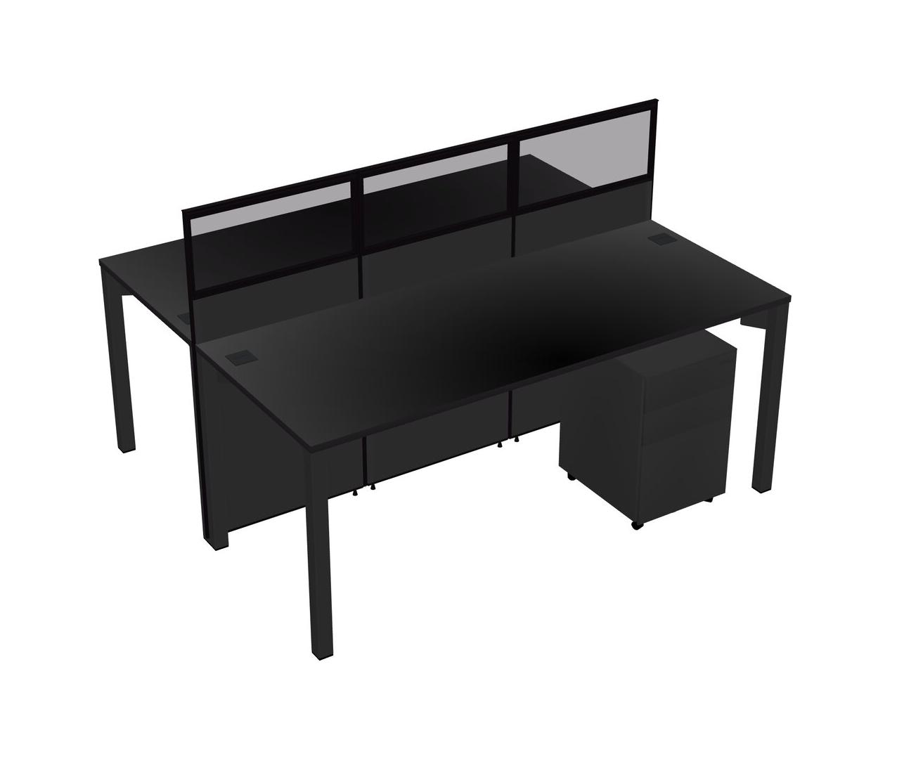 Black Shared Rectangular Office Cubicle Panel System With Mobile Drawers For 2 Persons