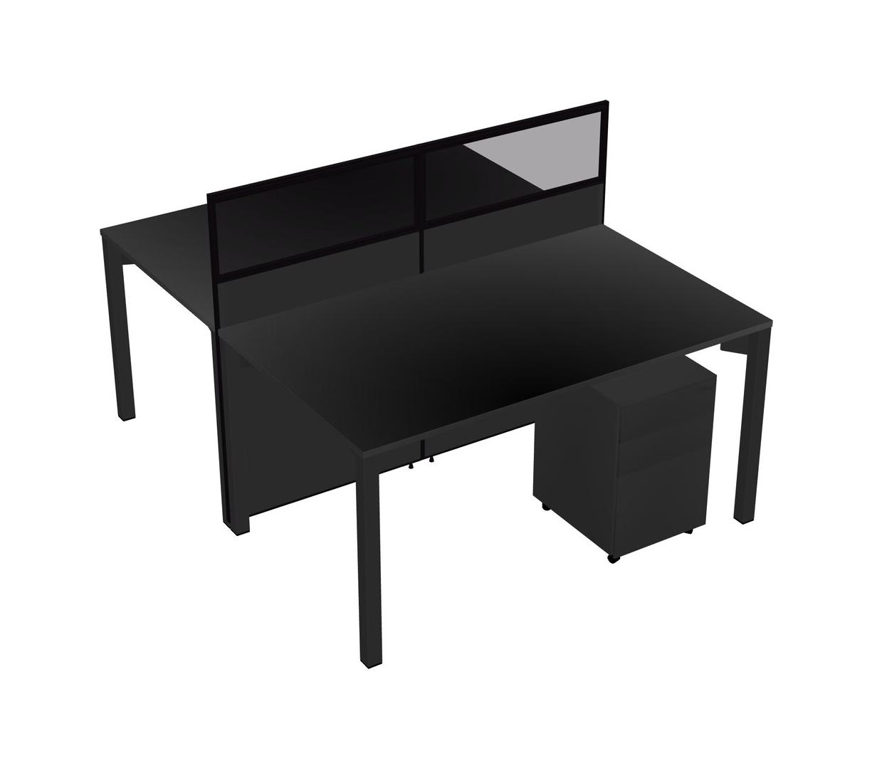 Black Shared Rectangular Office Cubicle Panel System With Mobile Drawers For 2 Persons