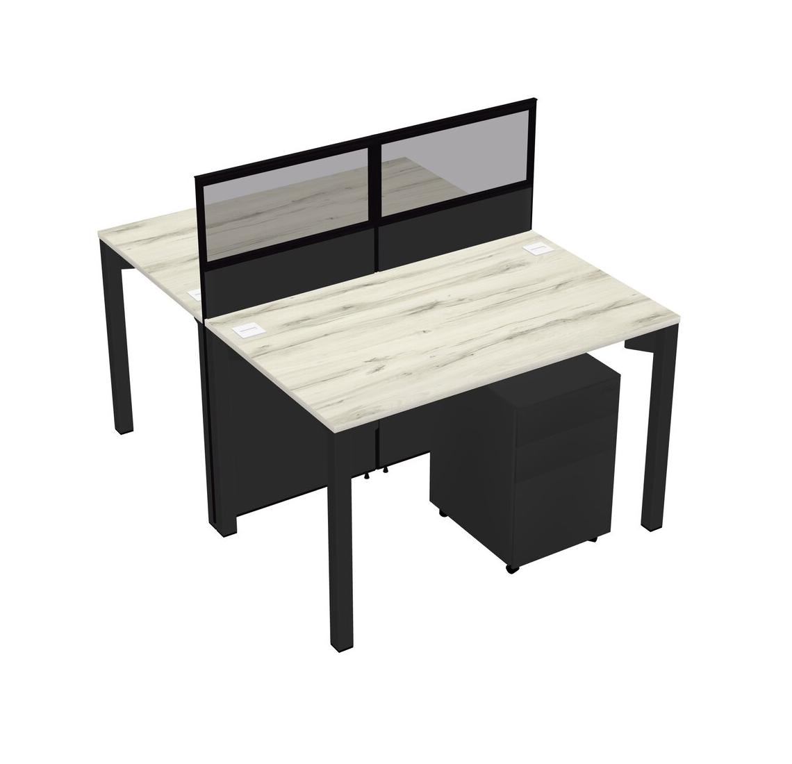 Heinne Holz Shared Rectangular Office Cubicle Panel System With Mobile Drawers For 2 Persons