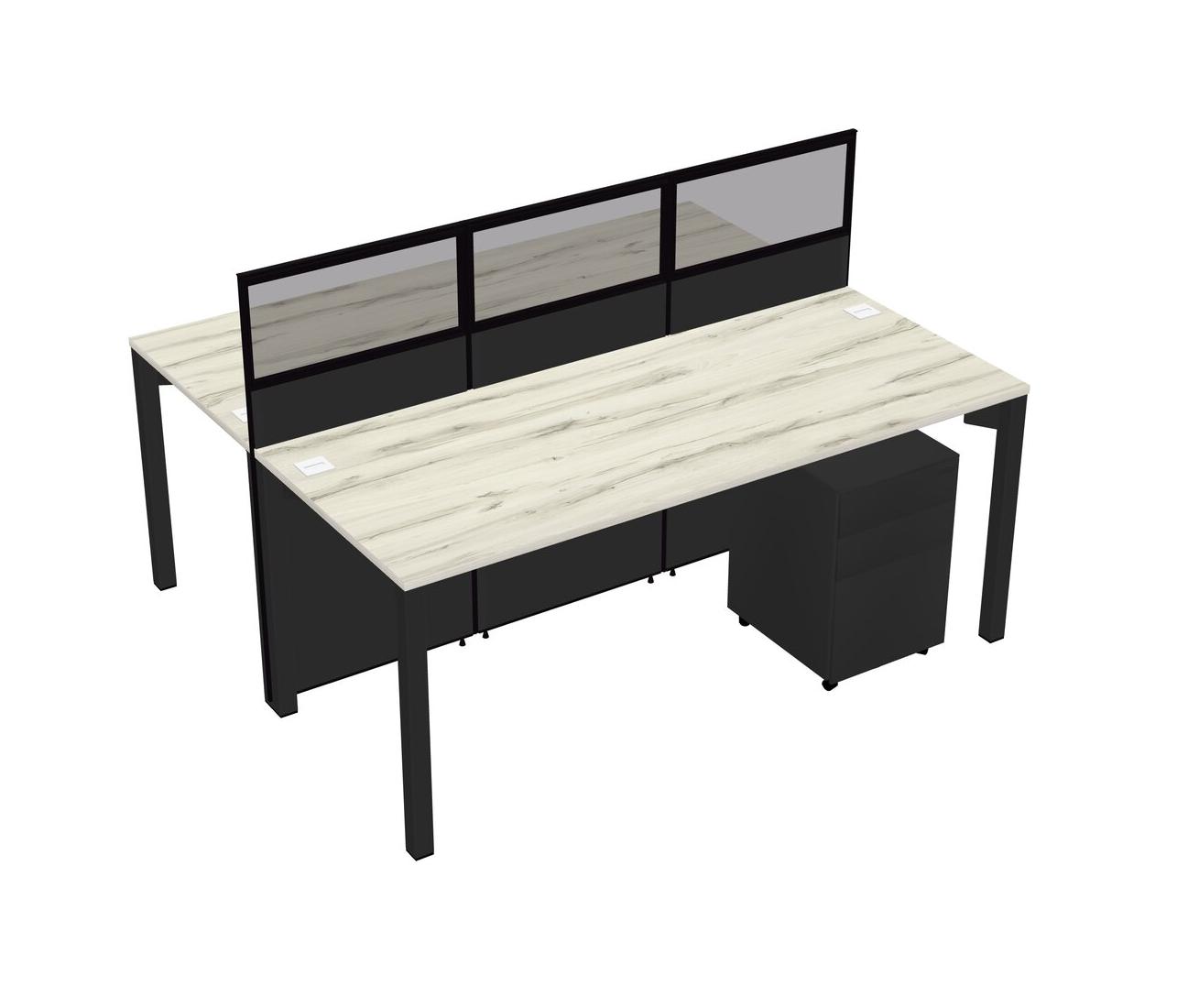 Heinne Holz Shared Rectangular Office Cubicle Panel System With Mobile Drawers For 2 Persons