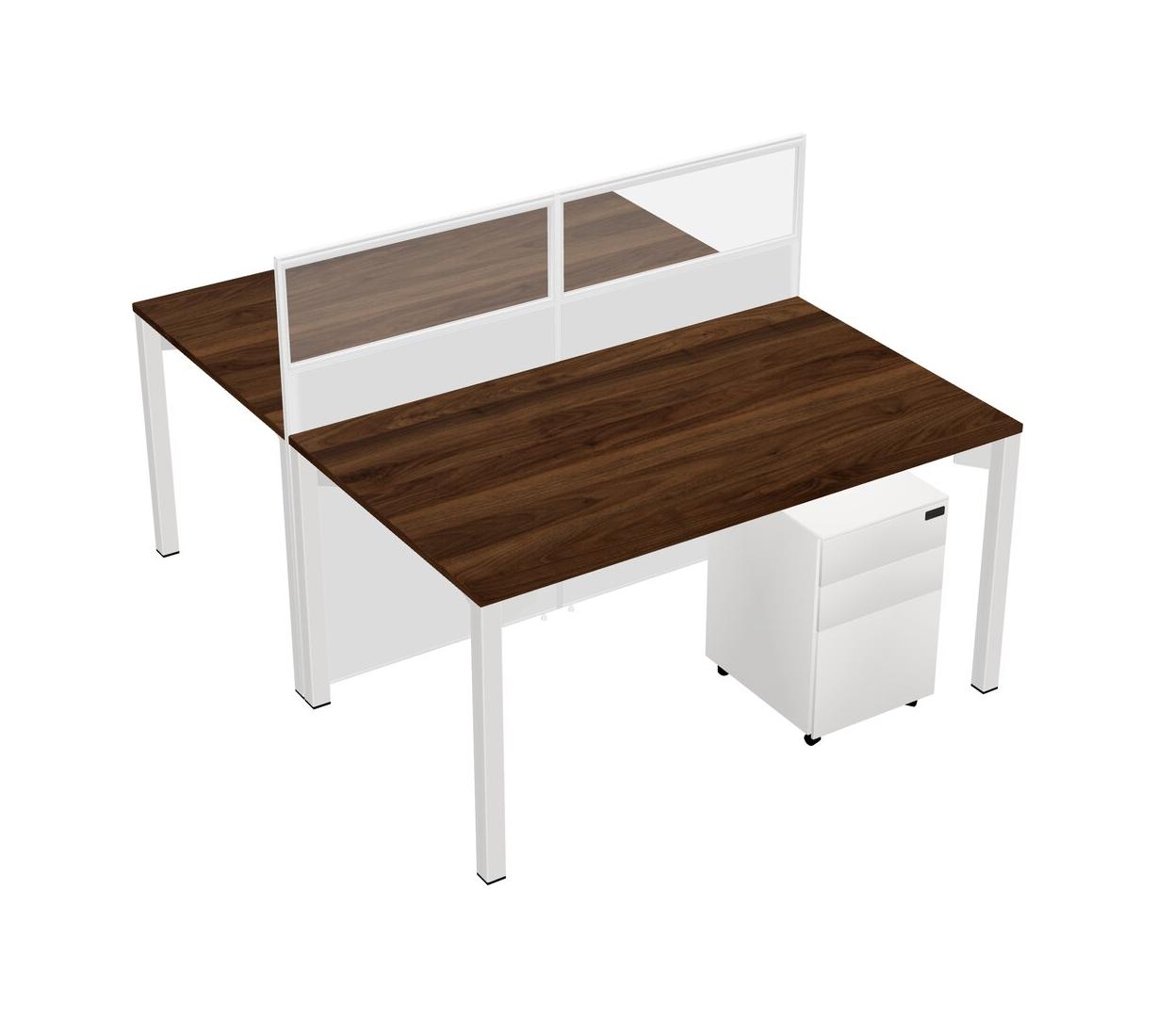 Columbia Walnut Shared Rectangular Office Cubicle Panel System With Mobile Drawers For 2 Persons