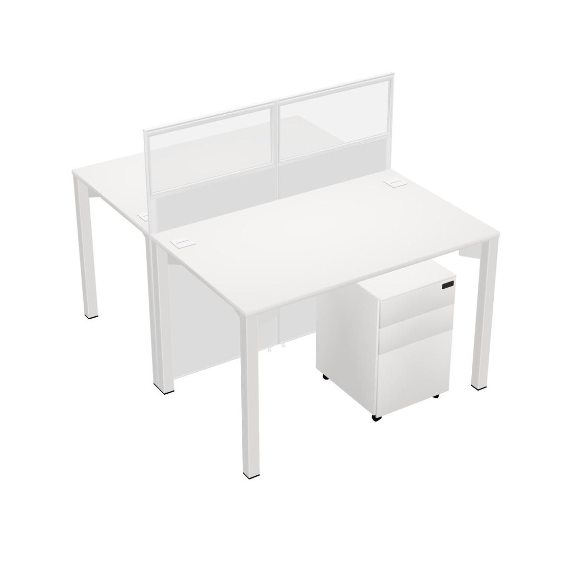 White Shared Rectangular Office Cubicle Panel System With Mobile Drawers For 2 Persons