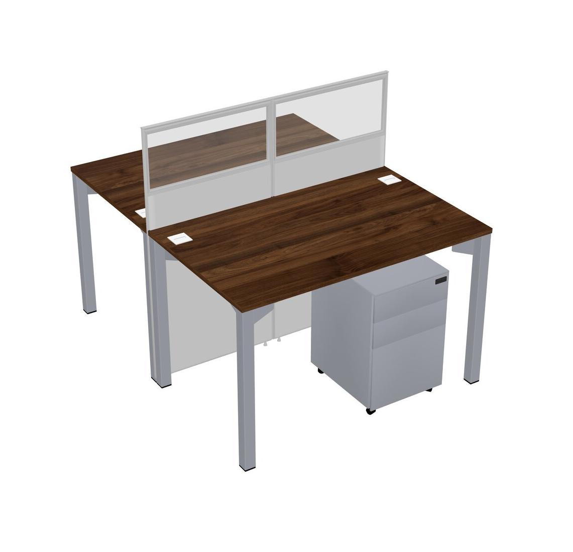Columbia Walnut Shared Rectangular Office Cubicle Panel System With Mobile Drawers For 2 Persons