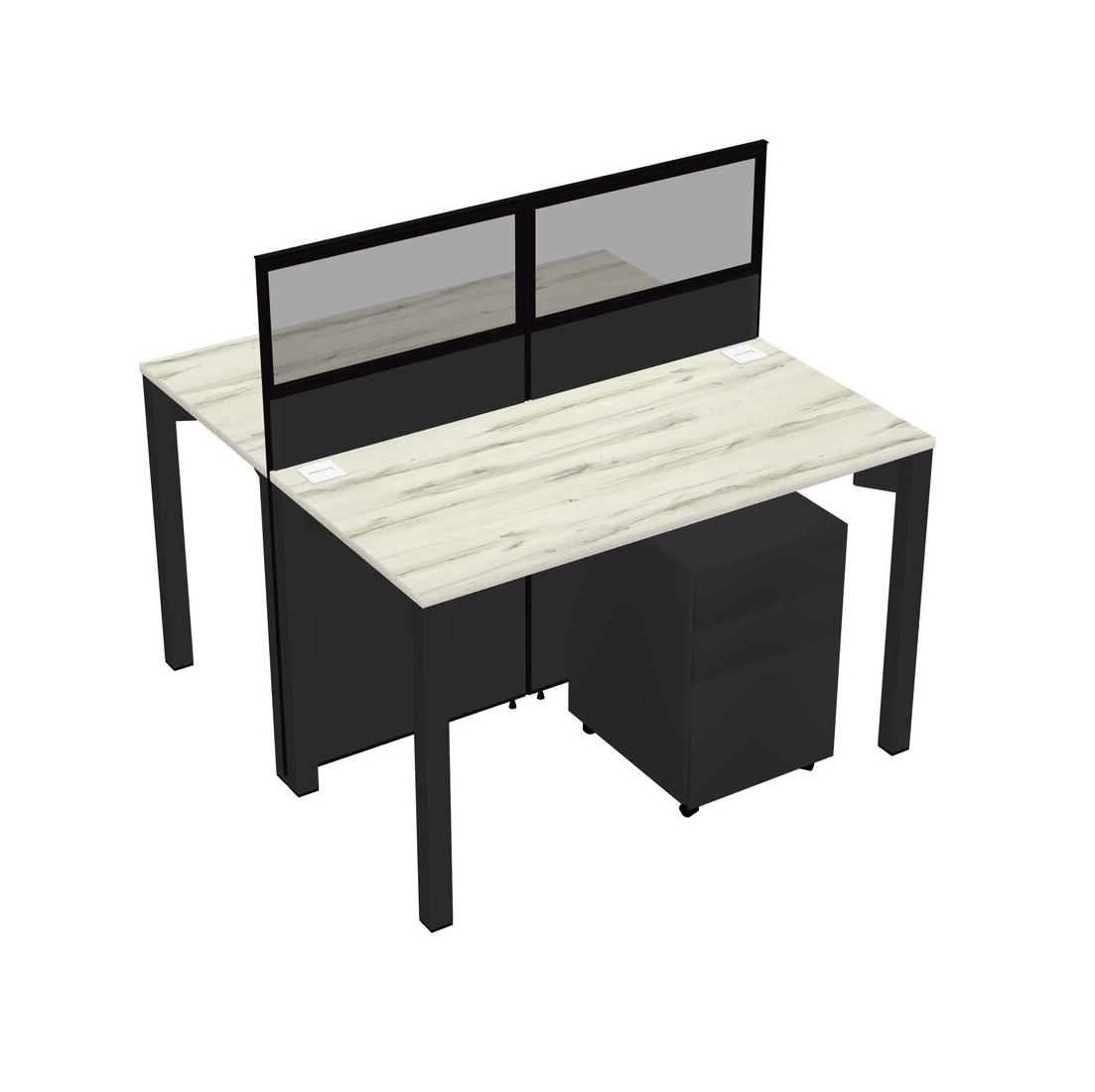 Heinne Holz Shared Rectangular Office Cubicle Panel System With Mobile Drawers For 2 Persons
