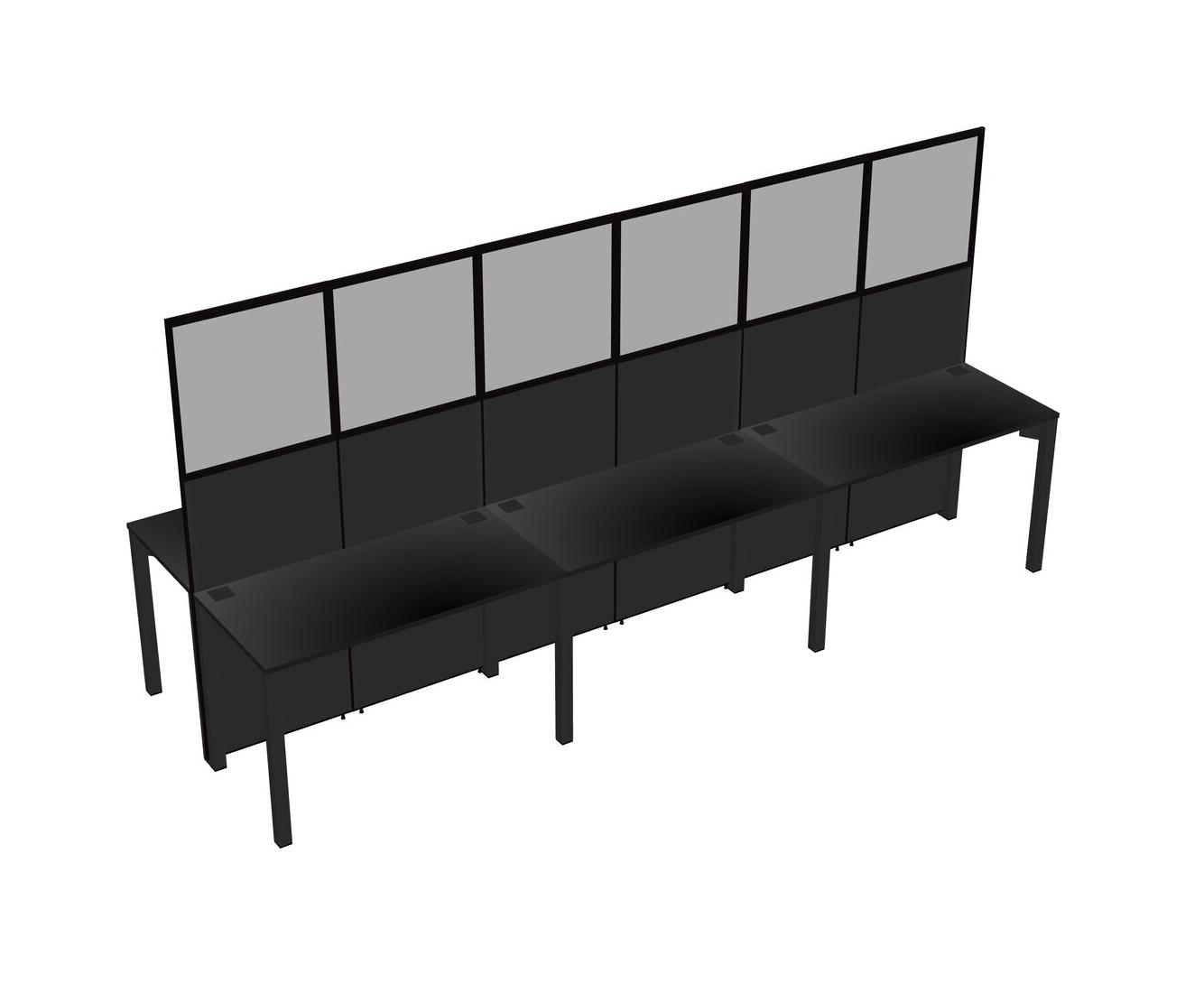 Black Shared Rectangular Office Cubicle Panel System For 6 Persons