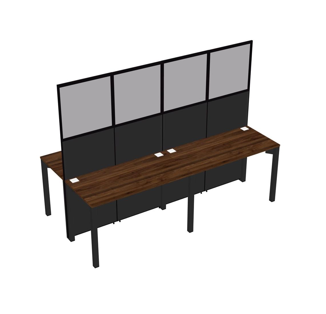 Columbia Walnut Shared Rectangular Office Cubicle Panel System For 4 Persons