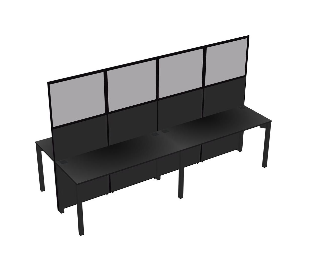 Black Shared Rectangular Office Cubicle Panel System For 4 Persons