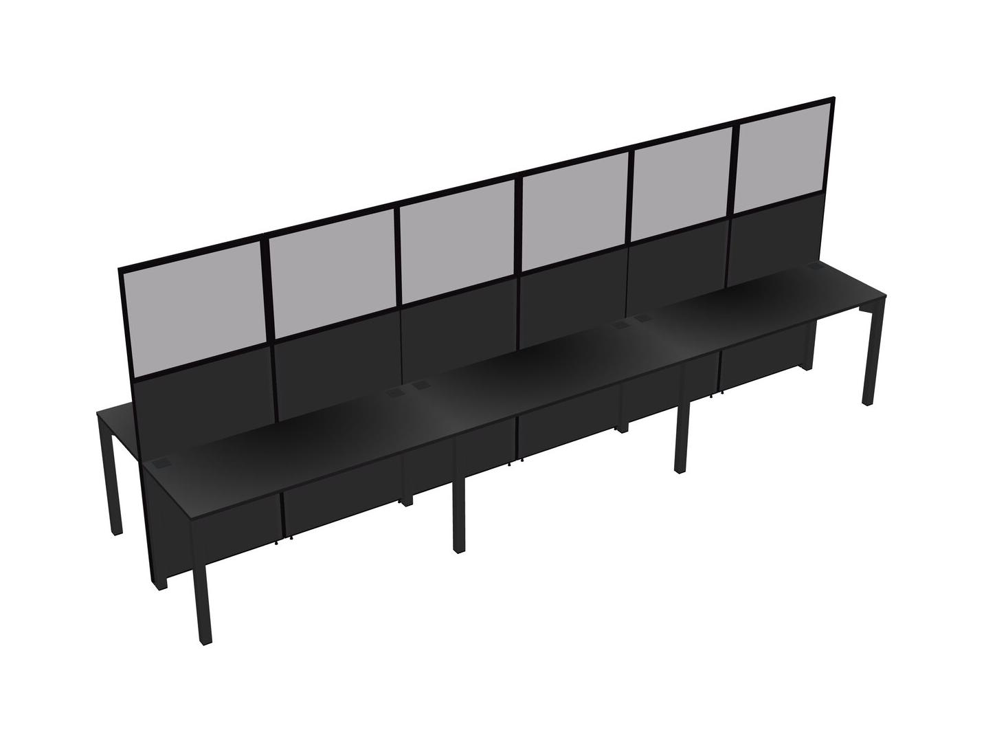 Black Shared Rectangular Office Cubicle Panel System For 6 Persons