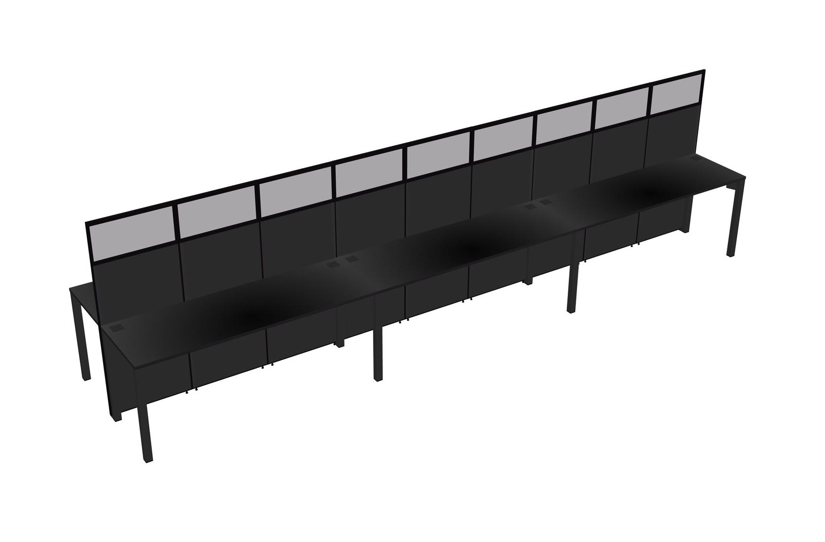 Black Shared Rectangular Office Cubicle Panel System For 6 Persons