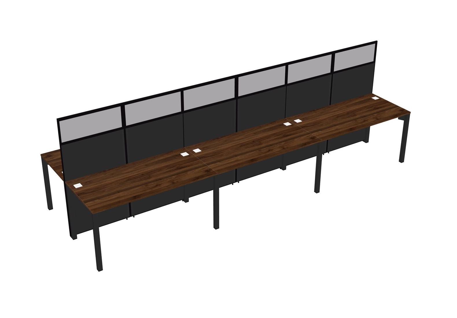 Columbia Walnut Shared Rectangular Office Cubicle Panel System For 6 Persons