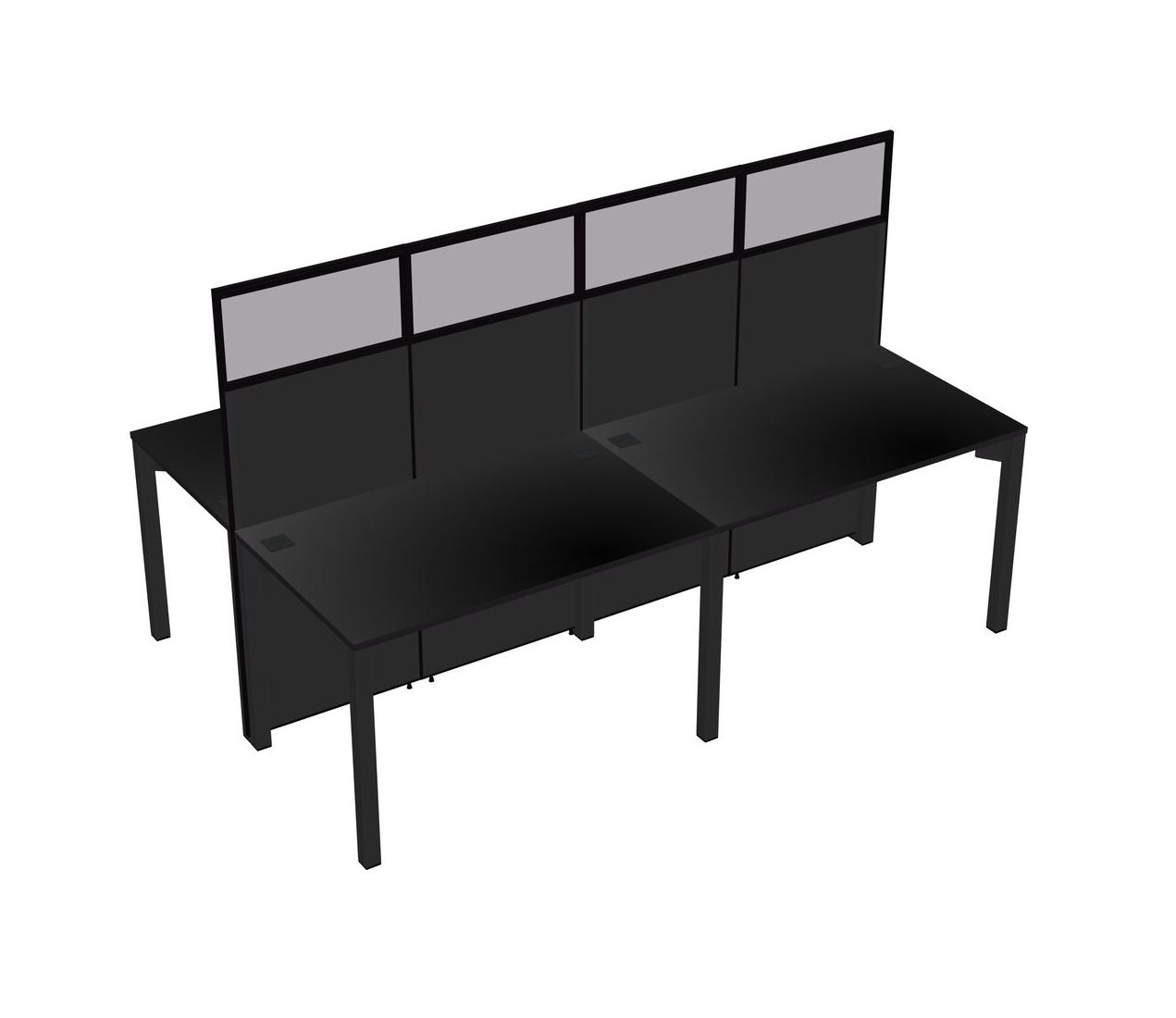 Black Shared Rectangular Office Cubicle Panel System For 4 Persons