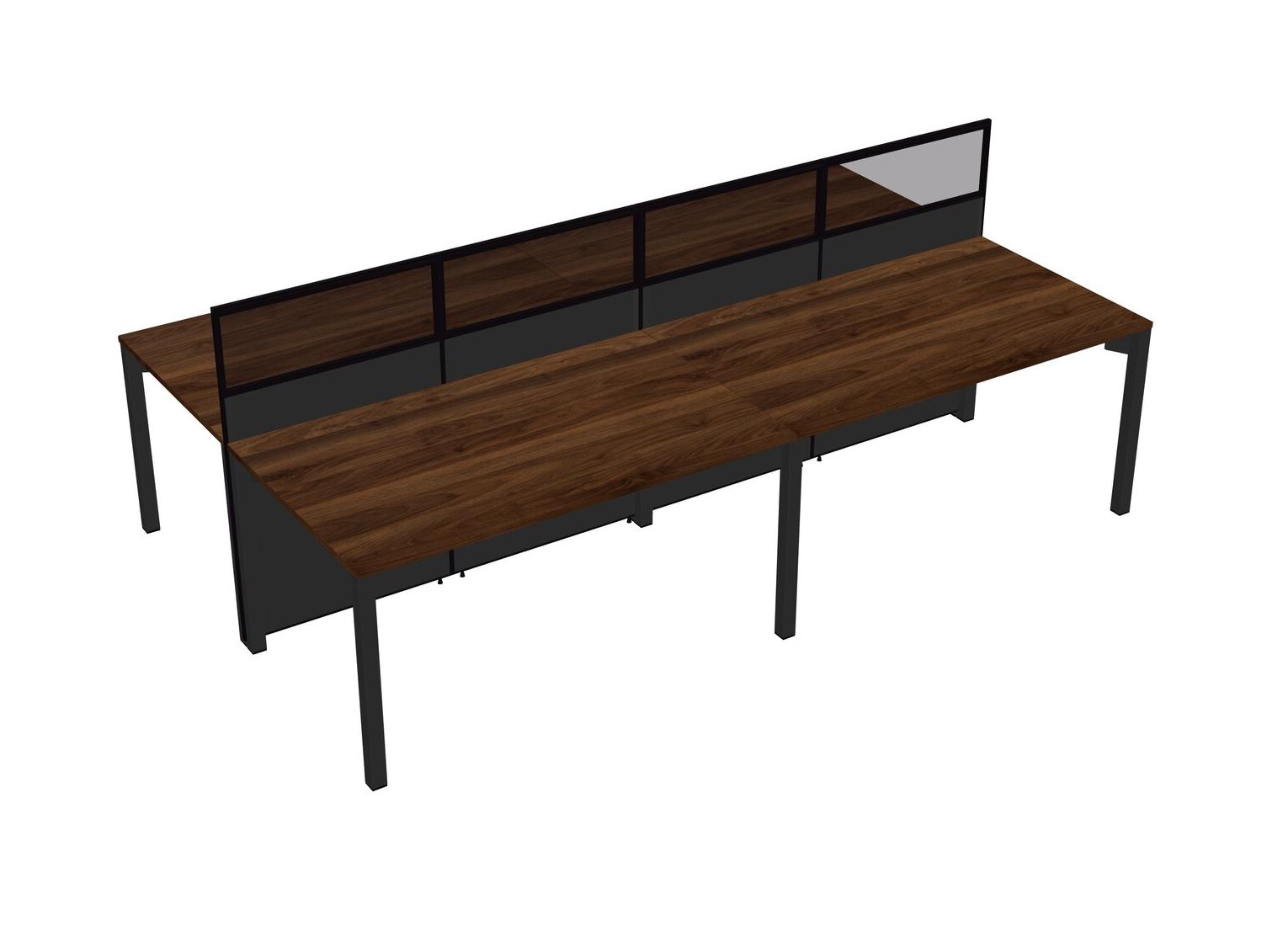 Columbia Walnut Shared Rectangular Office Cubicle Panel System For 4 Persons