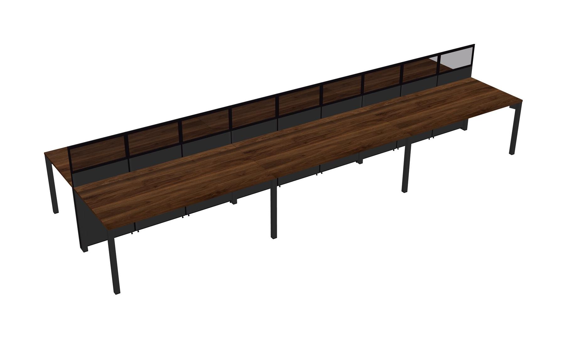 Columbia Walnut Shared Rectangular Office Cubicle Panel System For 6 Persons