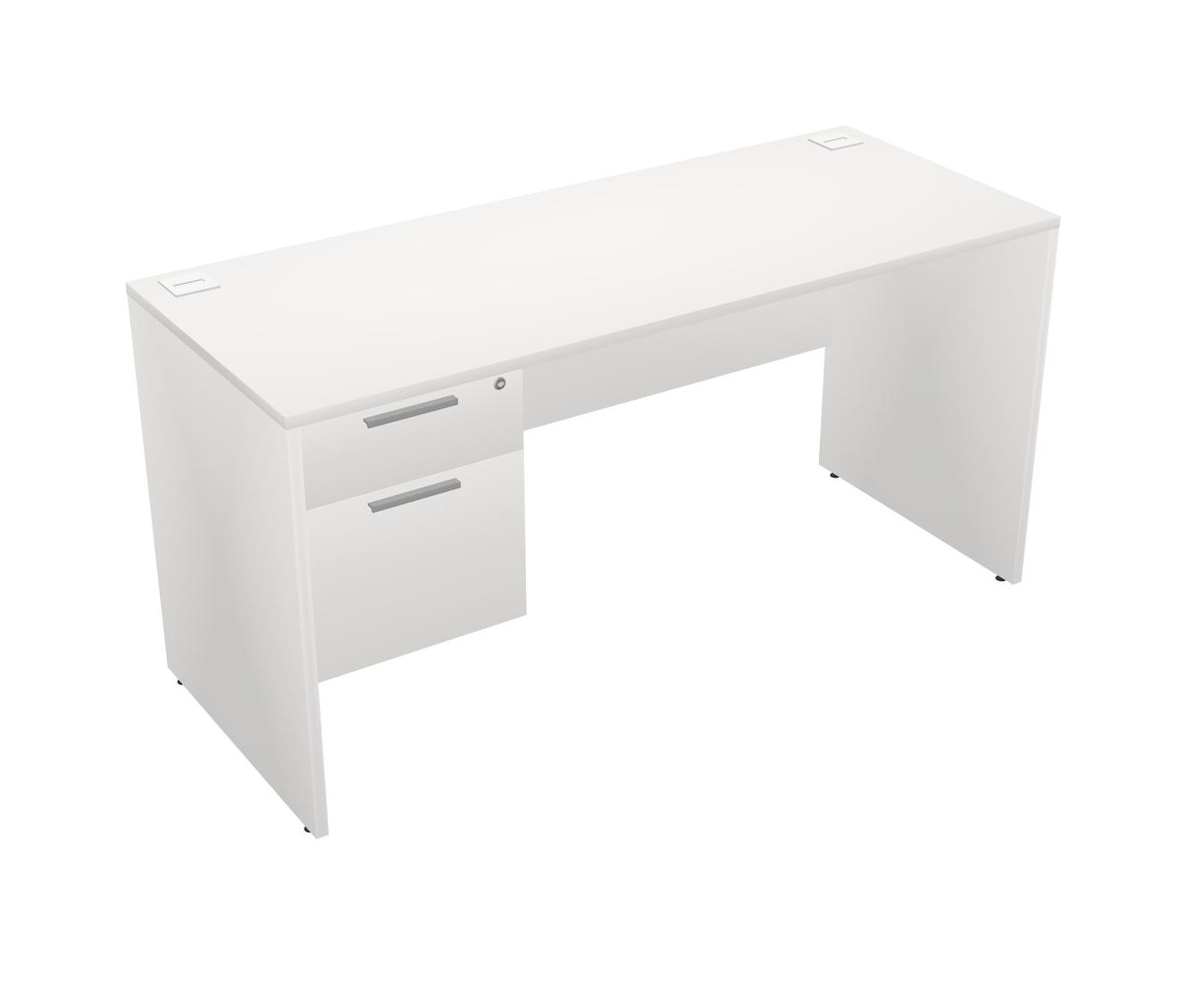 White Rectangular Office Desk Plus White Hanging Drawers