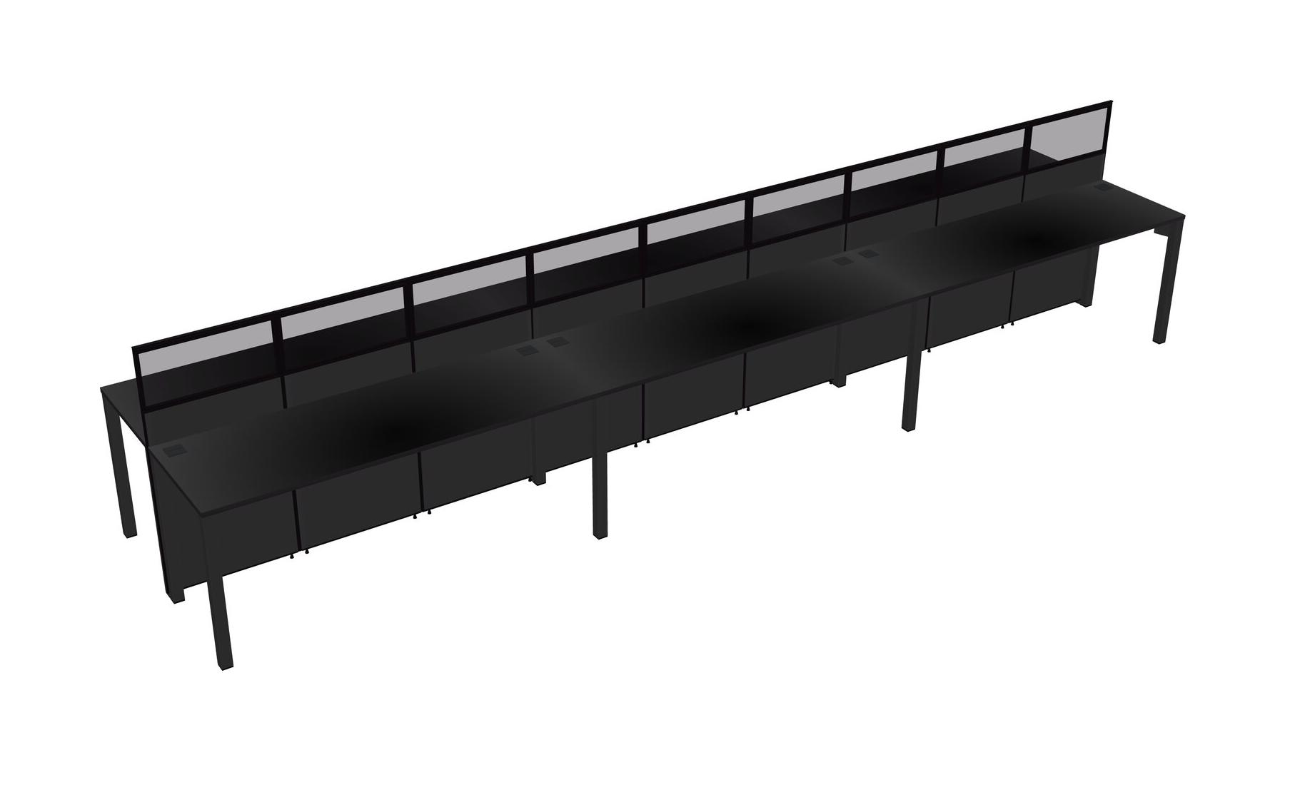 Black Shared Rectangular Office Cubicle Panel System For 6 Persons