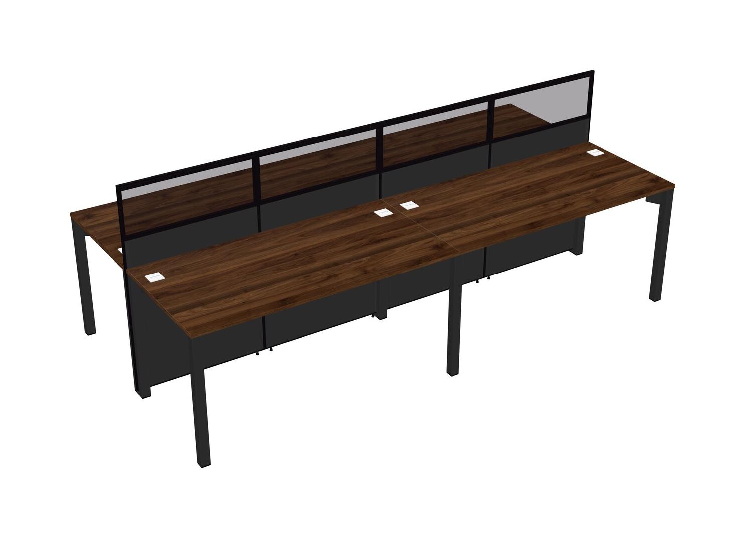 Columbia Walnut Shared Rectangular Office Cubicle Panel System For 4 Persons