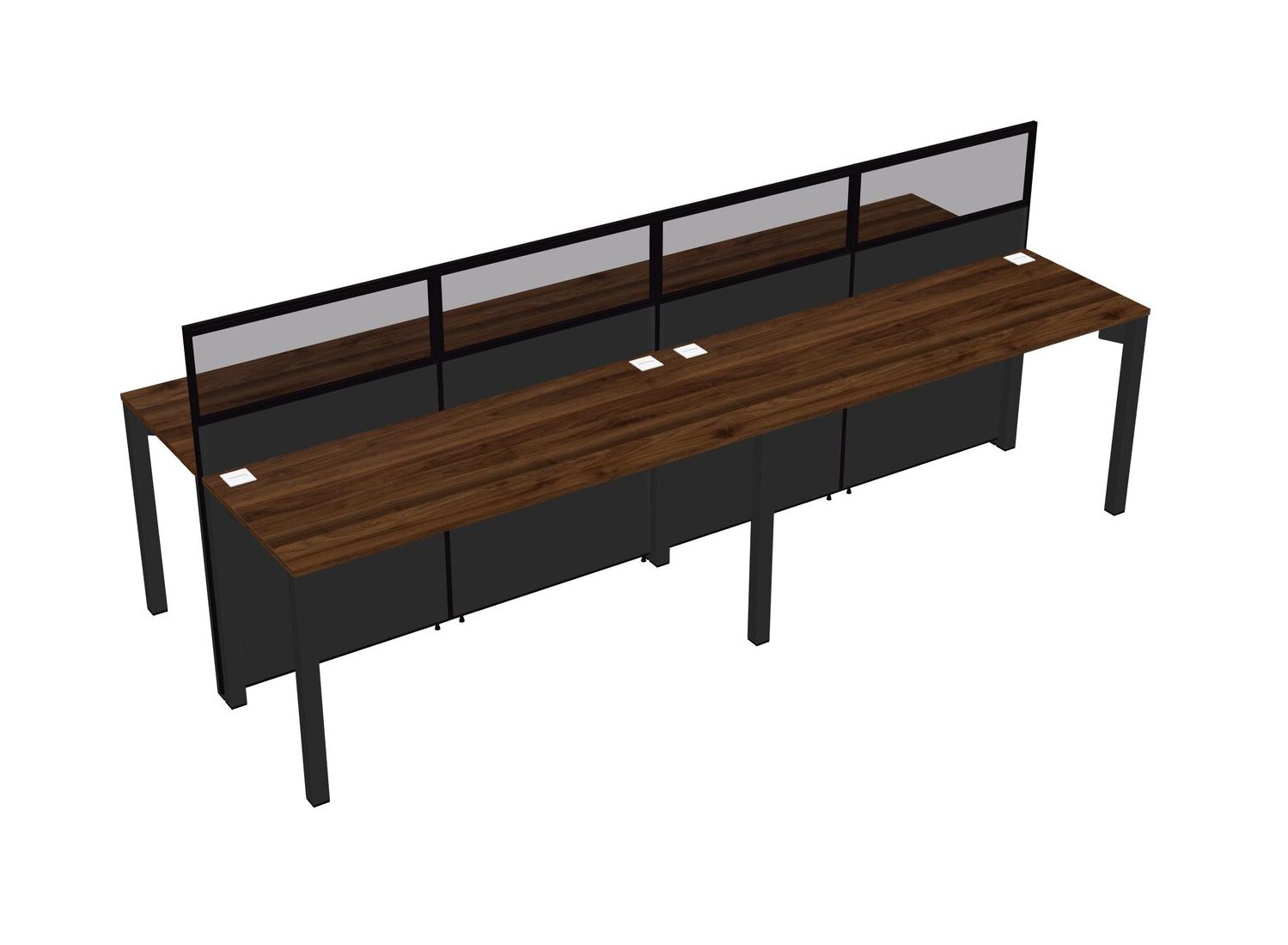 Columbia Walnut Shared Rectangular Office Cubicle Panel System For 4 Persons