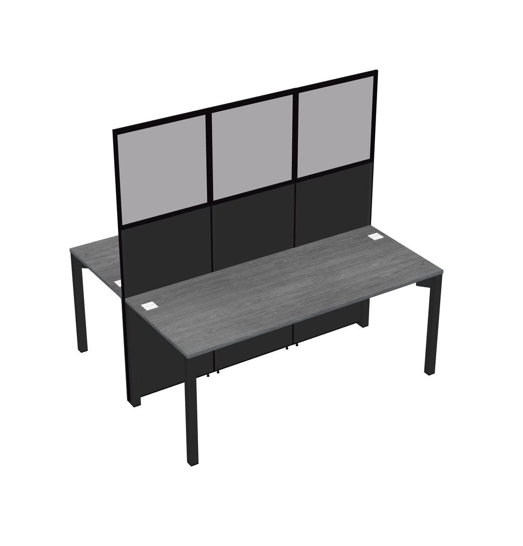 Grey Shared Rectangular Office Cubicle Panel System For 2 Persons