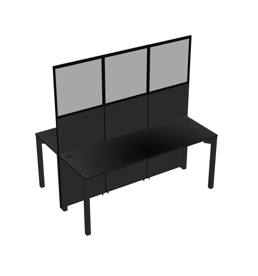 Black Shared Rectangular Office Cubicle Panel System For 2 Persons