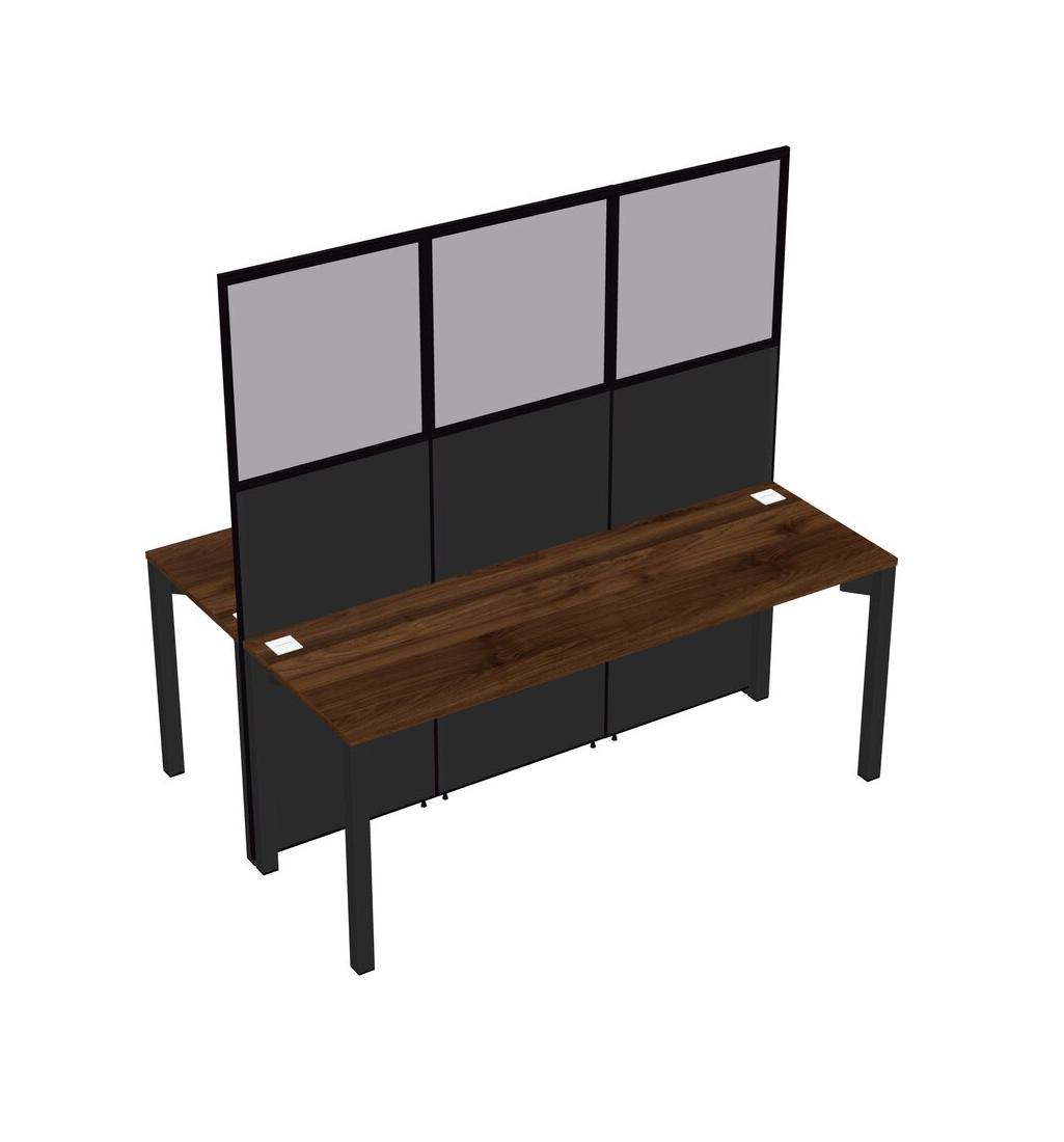 Columbia Walnut Shared Rectangular Office Cubicle Panel System For 2 Persons