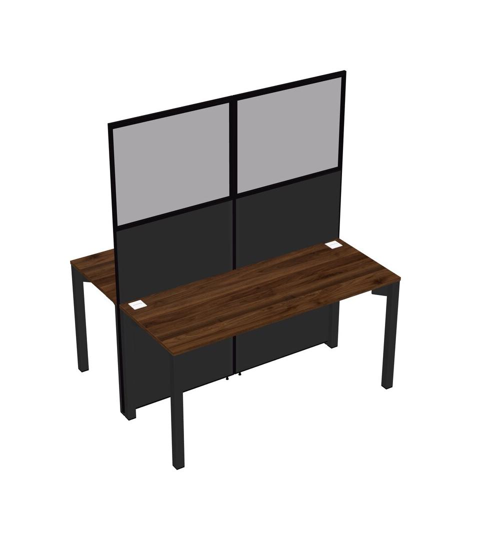 Columbia Walnut Shared Rectangular Office Cubicle Panel System For 2 Persons