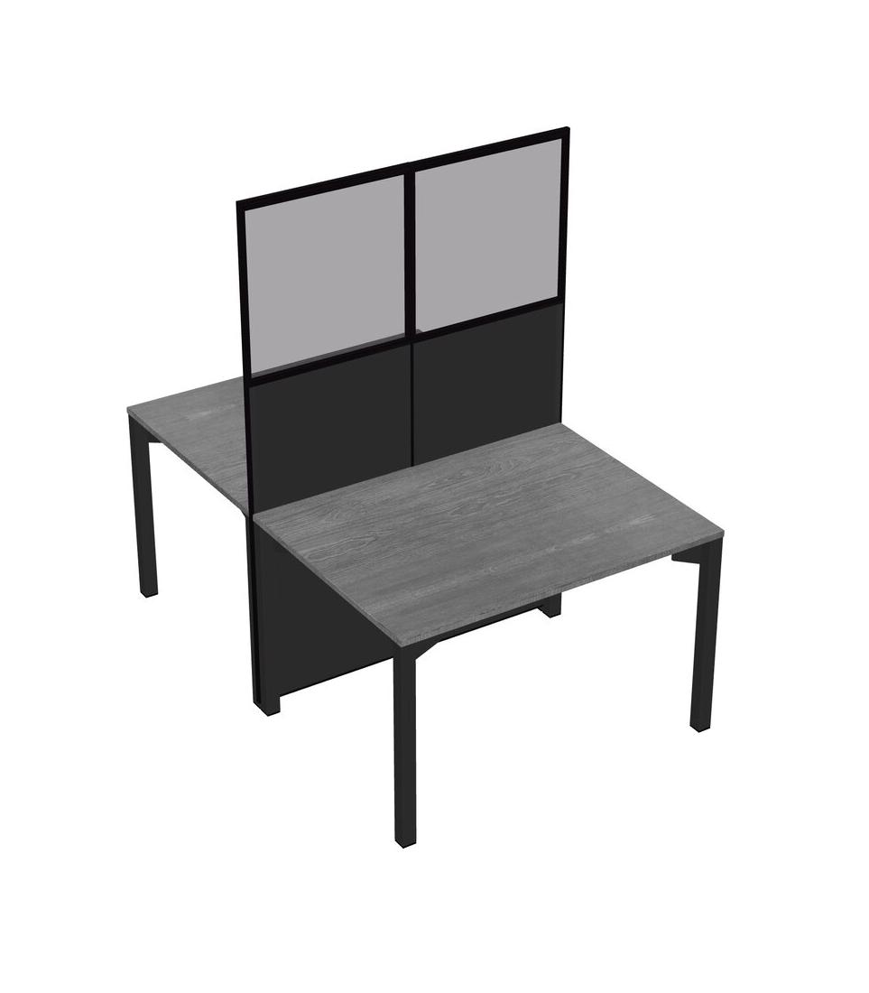 Grey Shared Rectangular Office Cubicle Panel System For 2 Persons