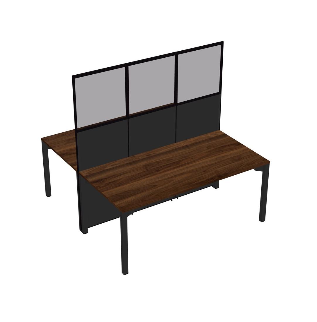 Columbia Walnut Shared Rectangular Office Cubicle Panel System For 2 Persons