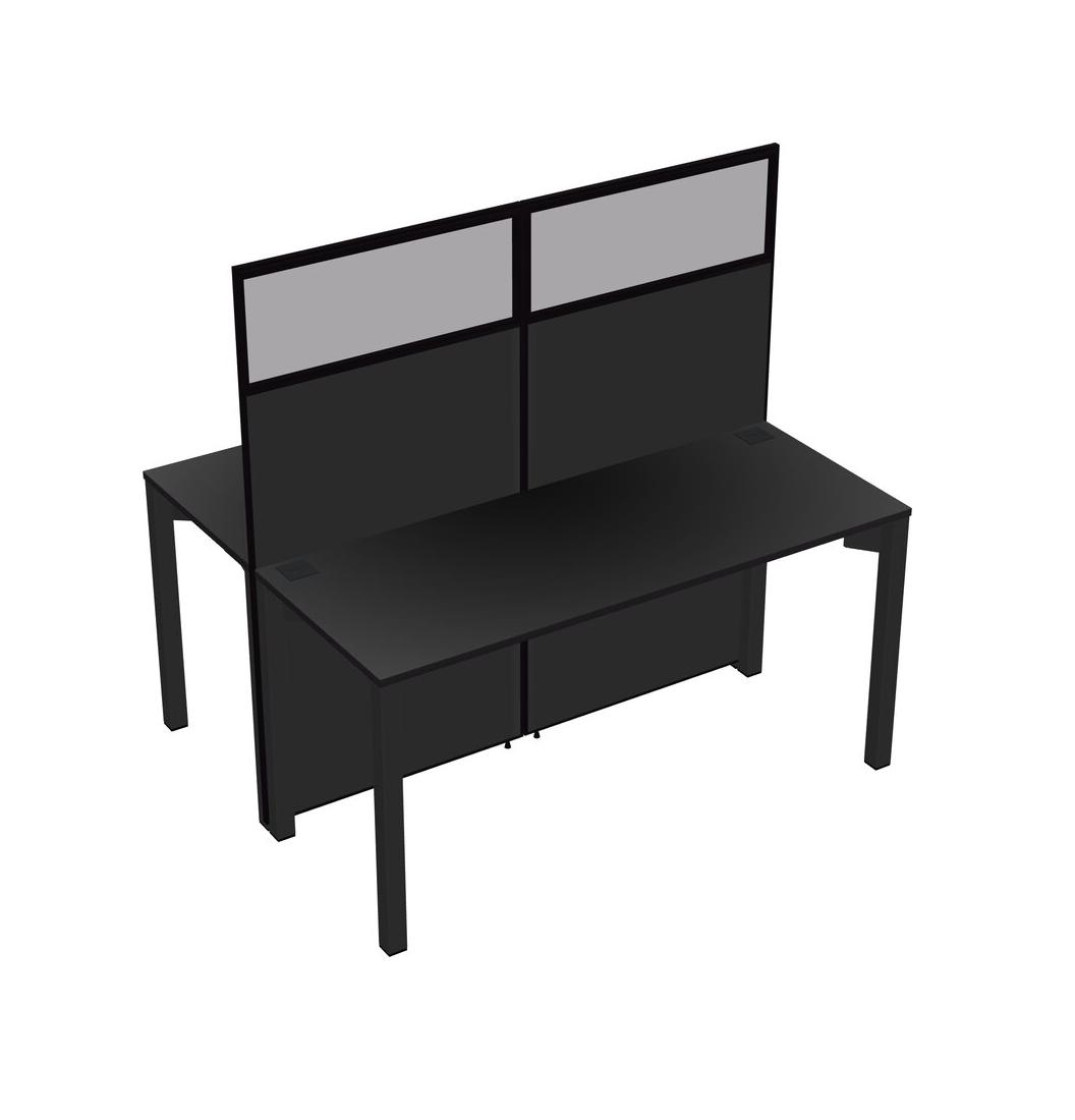 Black Shared Rectangular Office Cubicle Panel System For 2 Persons