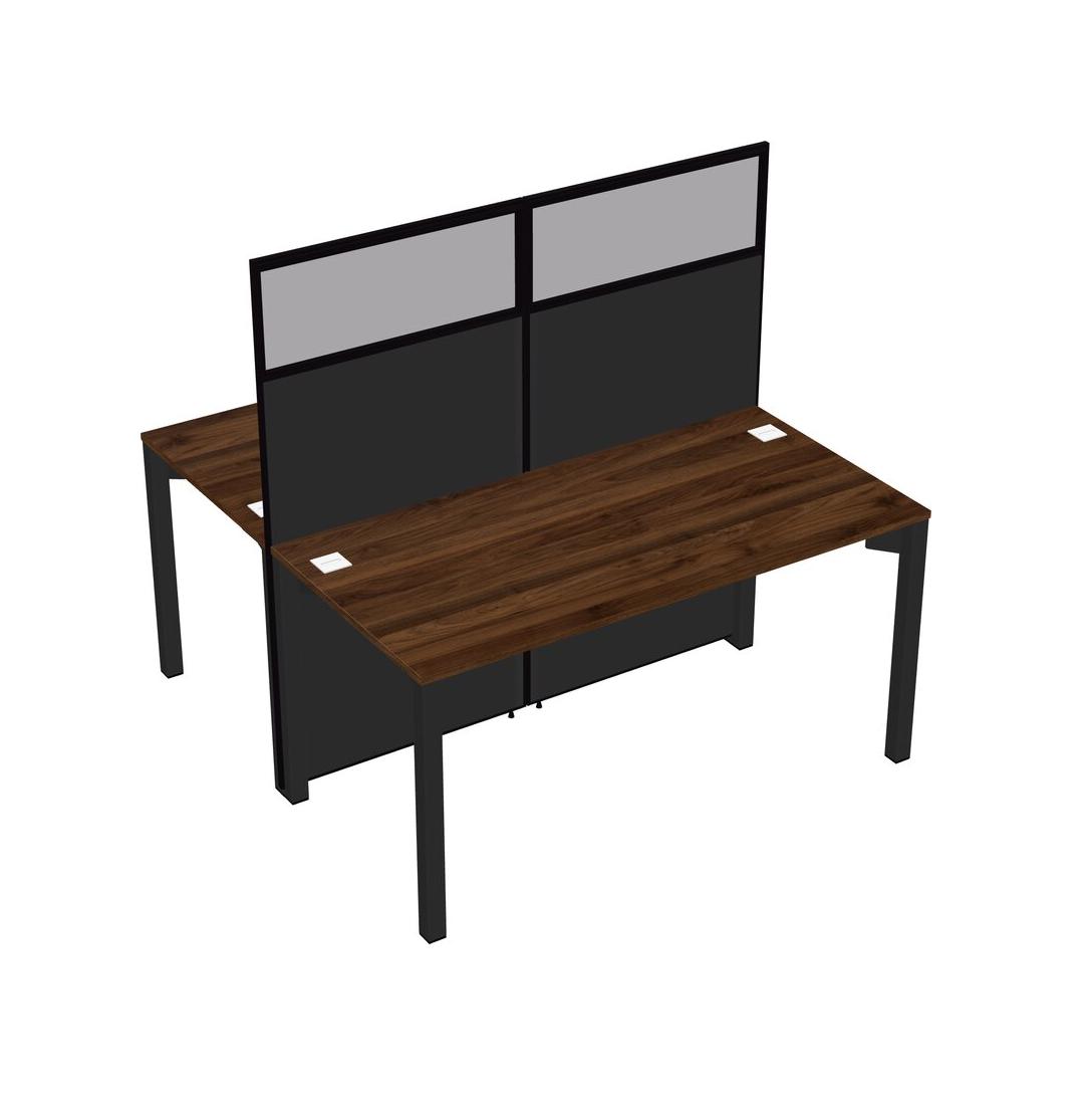 Columbia Walnut Shared Rectangular Office Cubicle Panel System For 2 Persons
