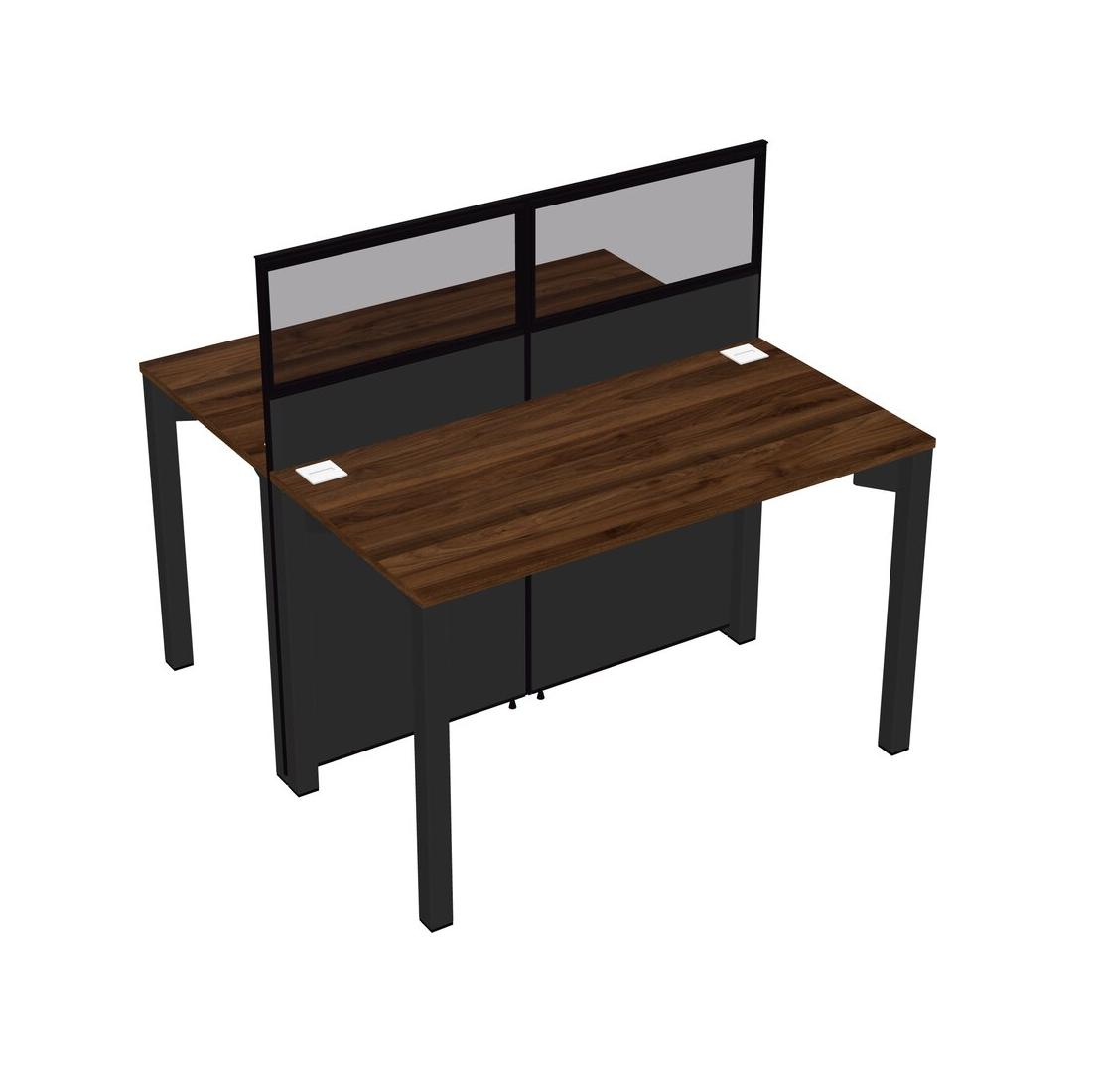 Columbia Walnut Shared Rectangular Office Cubicle Panel System For 2 Persons