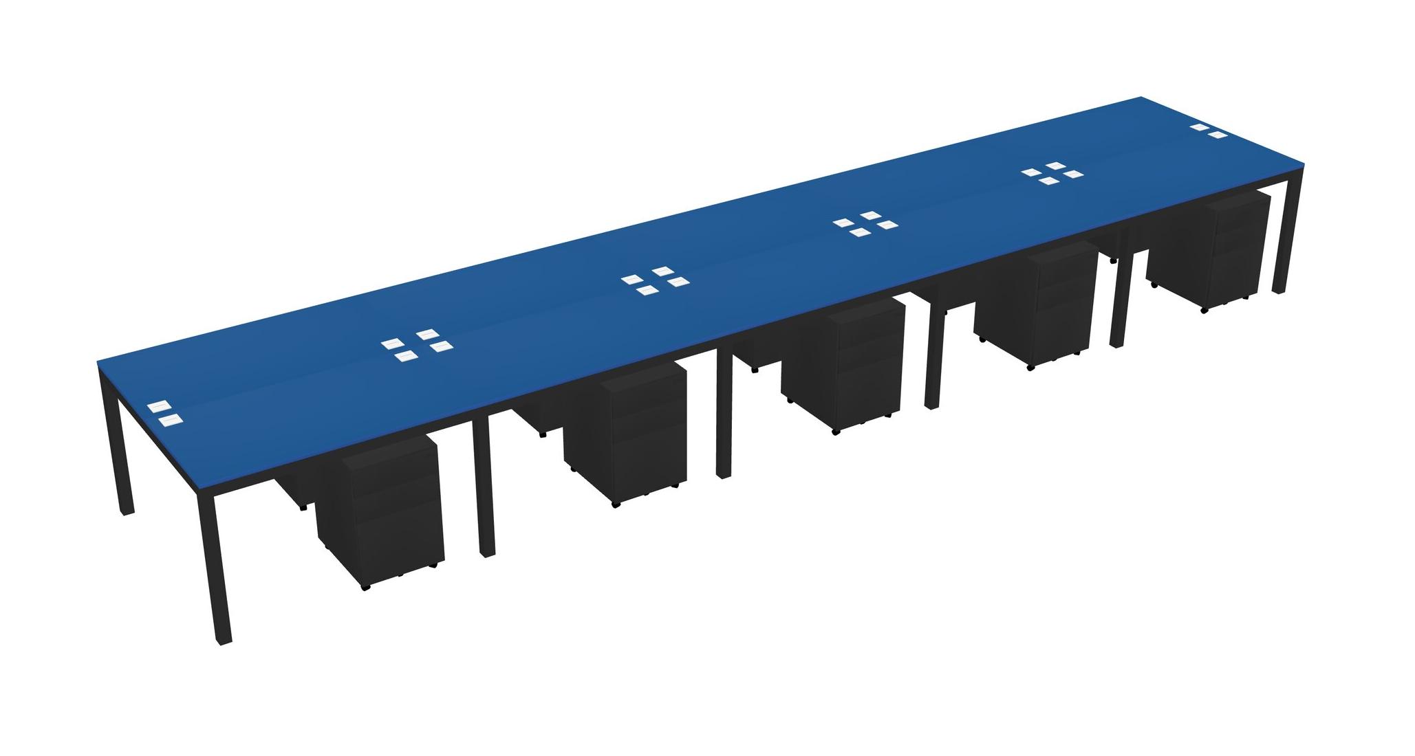 Prism Blue Shared Rectangular Office Desk With Metal Mobile Drawers For 10 Persons