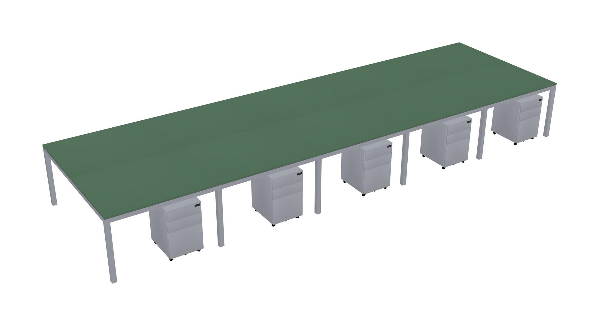 Green Shared Rectangular Office Desk With Metal Mobile Drawers For 10 Persons